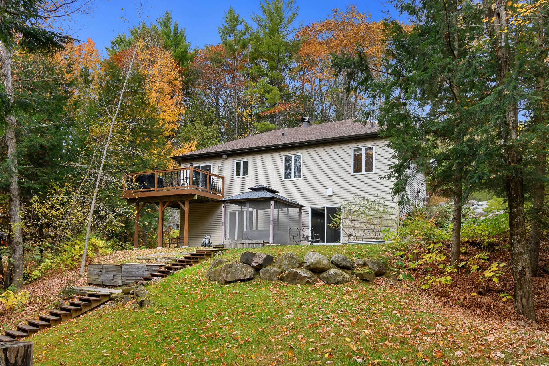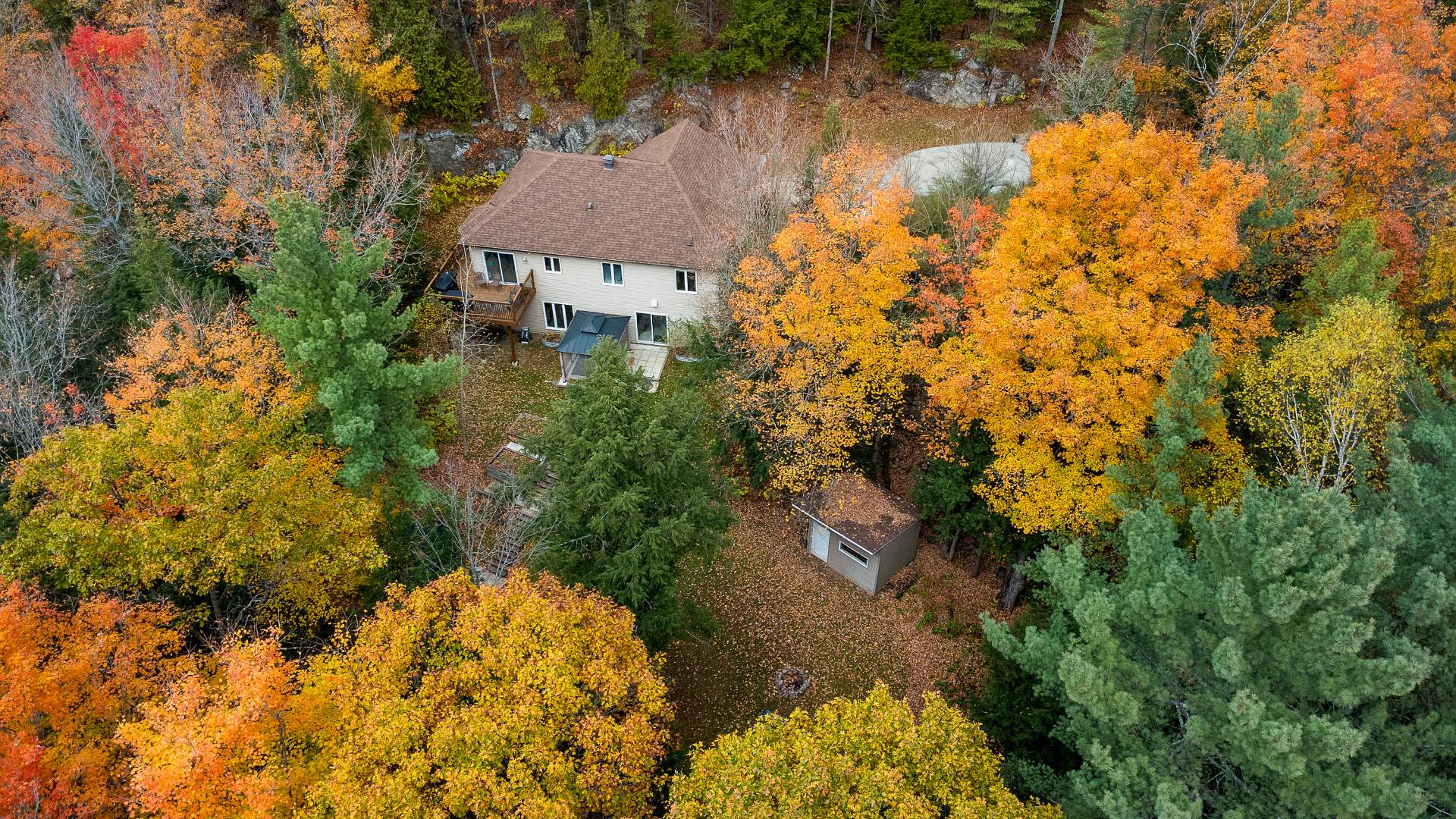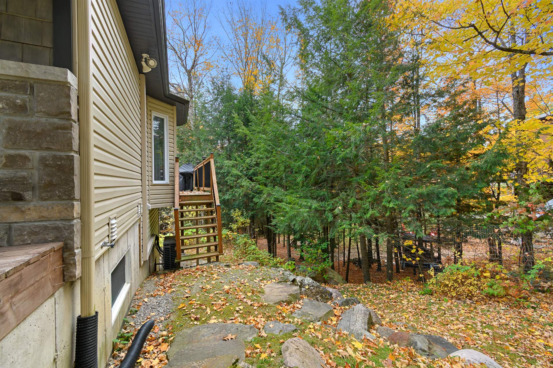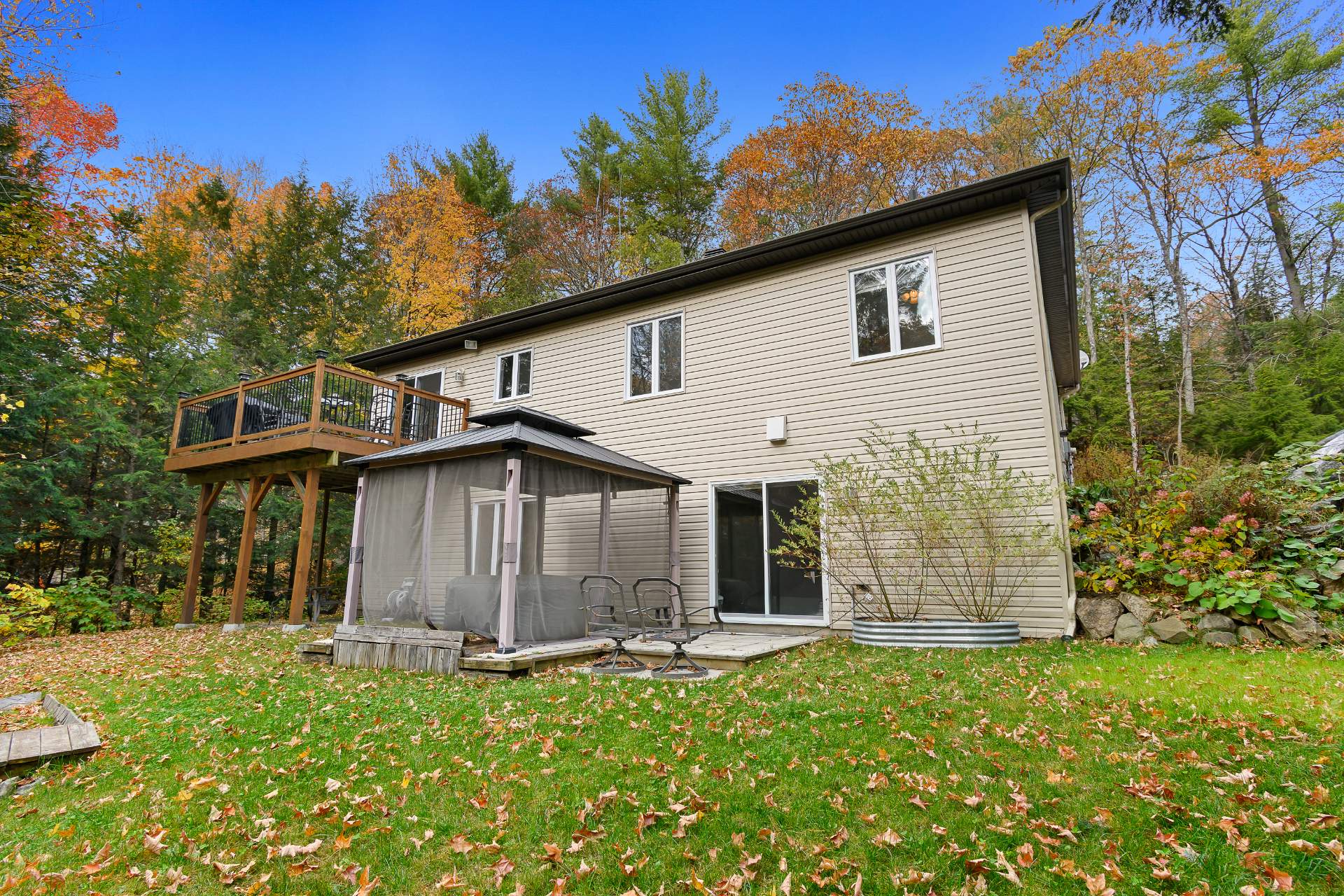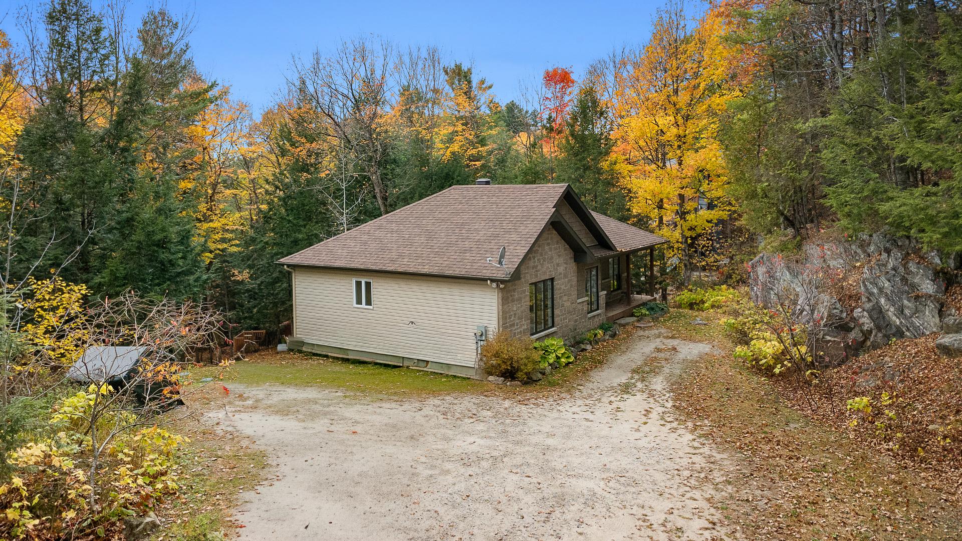 thermopompe 18 000 BTU. Terrain boisé privé avec patio, piscine, remise, coin feu, grand stationnement et espace pour garage. À 20 min de Gatineau..